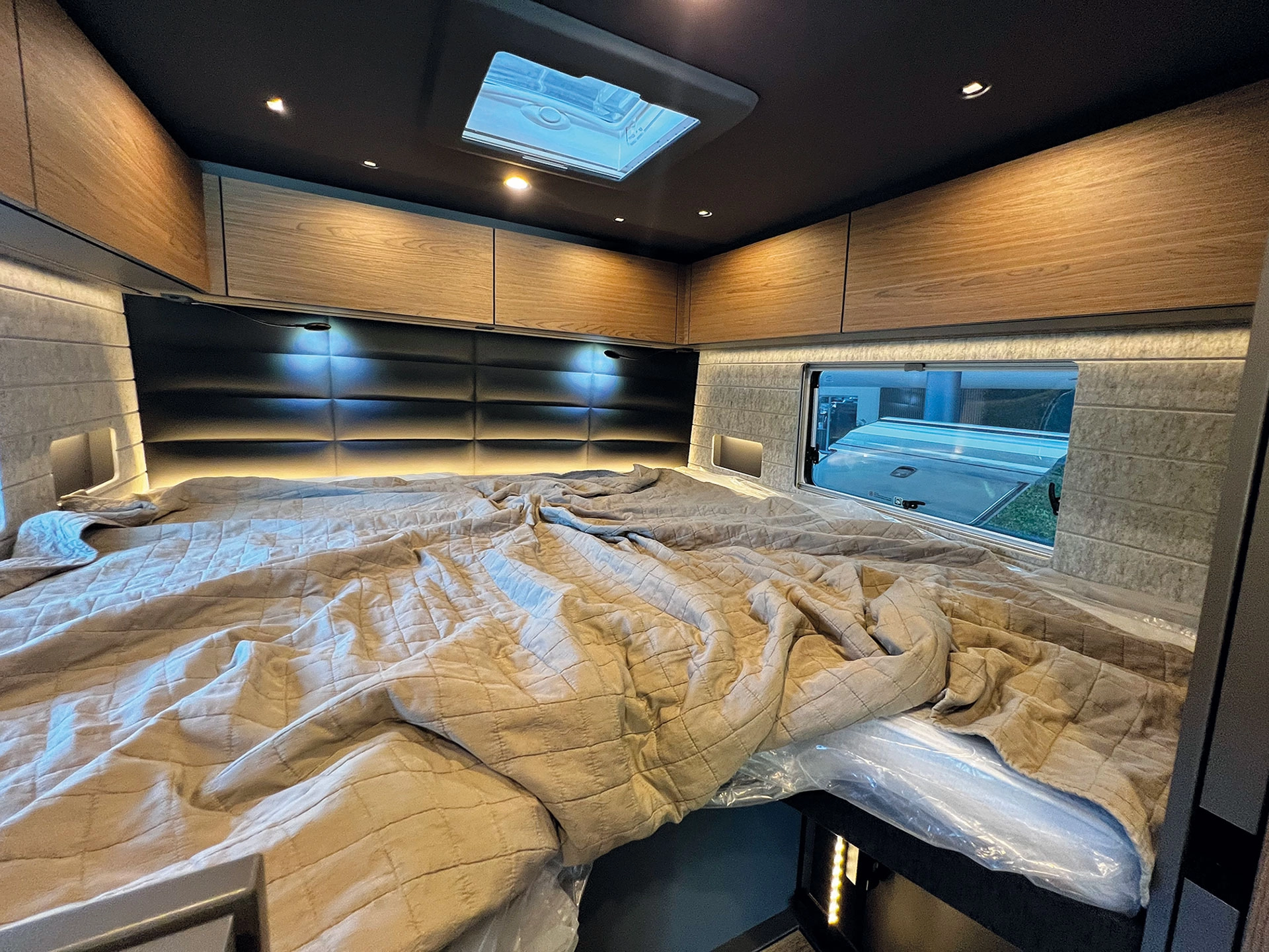 Łóżko w sypialni ma 2 m długości, nad szoferką można opuścić dostępne opcjonalnie łóżko dla dwóch osób. A są jeszcze przecież schowki zewnętrzne, ogromny garaż, nieopisane tutaj systemy bezpieczeństwa jak asystent bocznego wiatru, system Distronic, zasobność zbiorników na czystą i szarą wodę, odpowiednio 300 i 200 l, zbiornik na fekalia o pojemności 170 l…