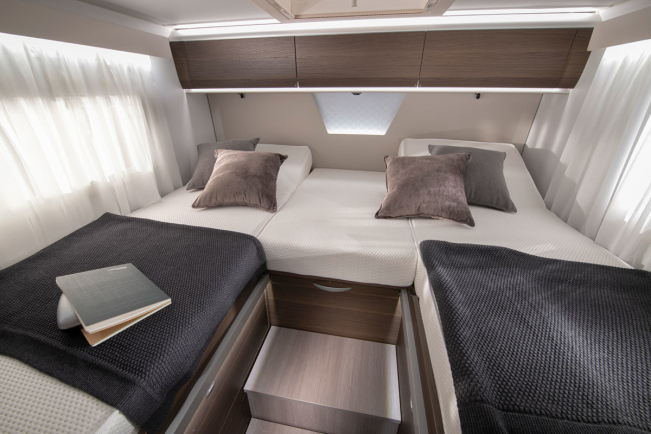 • Część sypialna, tylne łóżka (dł. x szer., cm): 197x83/73; 178x42/62; 202x83/73