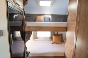 • Składane przednie łóżko nad kabiną z panoramicznym oknem