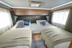 • Składane przednie łóżko nad kabiną z panoramicznym oknem