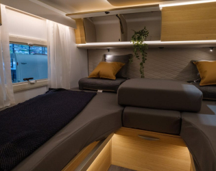 Zintegrowane kampery klasy premium z charakterystyczną stylistyką, ekskluzywną maską przednią i tylną ścianą. Trwała konstrukcja nadwozia „Comprex” w kolorze „srebrnym” lub białym. Poczuj się jak w domu w eleganckich, nowoczesnych przestrzeniach mieszkalnych oferujących bezkompromisowy komfort przez cały rok.