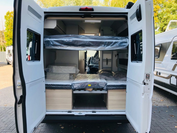 • Część sypialna, tylne łóżka (dł. x szer., cm): 196x145-140/185x130 ( Fiat ) lub 175x130 (Citroen)