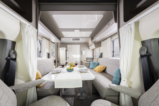 Dzięki elastycznemu podnoszonemu łóżku i obrotowym fotelom kierowcy, w ACT 640 otwiera się obszerna przestrzeń mieszkalna. Elastyczna część sypialna dla maksymalnie czterech osób, która nie zajmuje statycznej części tylnej, jak to zwykle bywa, zapewnia przestronną łazienka z wystarczającą ilością miejsca na oddzielenie prysznica od toalety. Stwarza to również miejsce na dużą szafę, która zapewnia wystarczającą ilość miejsca do przechowywania ubrań i innych przyborów. Optymalny układ ACT 640 eliminuje potrzebę wyboru między zwrotnym pojazdem a poczuciem przestronności.