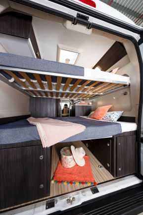 • 2 rozkładane podwójne łóżka piętrowe z tyłu