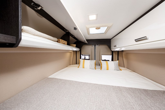 - NORTHAUTOKAPP: Automatyczna skrzynia biegów + Aluminiowe 16" czarne matowe felgi + Światła LED do jazdy dziennej + Czujnik deszczu i zmierzchu + Płyta ślizgowa czarna + Deska rozdzielcza z chromowymi wstawkami + Skórzana kierownica i gałka zmiany biegów + Dywanik do kabiny + Płaskie szyby po bokach + Światło LED nad wejściem + Kamera cofania + Dwu kolorowe meble wysokiej jakości + Wykładzina + Zestaw łóżko do salonu (Lounge) + Blat kuchenny typu Corian + Drewniana wkładka pod prysznicem + Izolowany i podgrzewany zbiornik szarej wody + Oklejenie NORTHAUTOKAPP