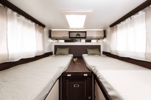 • WINTER PACK: izolowany i podgrzewany zbiornik szarej wody, izolowany stopień wejściowy, instalacja na 2 akumulator, wzmocniony system ogrzewania Truma 6000W + el. 230V + InetBox w modelach T463, T468, T483, T497, S363 oraz Webasto w pozostałych modelach, zewnetrzna zasłona zimowa na szyby w kabinie, cyfrowy wyświetlacz ogrzewania, dodatkowo zaizolowane przewody grzewcze
