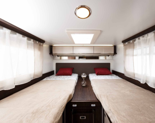 - Pakiet Winter: izolowany i podgrzewany zbiornik szarej wody, izolowany stopień wejściowy, instalacja na 2 akumulator, wzmocniony system ogrzewania (Truma 6000 W + el.230 V) w modelach T463, T468, T483, T497, S363 oraz Webasto w pozostałych modelach, zewnetrzna zasłona zimowa na szyby w kabinie, dodatkowo zaizolowane przewody grzewcze