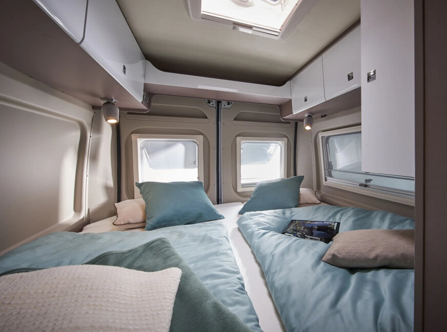 - 2x pojedyncze łóżko wzdłużne (możliwość stworzenia podwójnego łóżka)