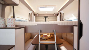 - Łóżko gościnne poprzeczne w miejscu grupy siedzeń z dodatkową tapicerką