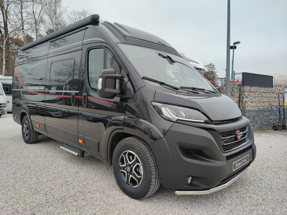 • Dach podnoszony w kolorze nadwozia (tylko w połączeniu ze specjalnym lakierem) (Przy zamówieniu dachu podnoszonego zmienia się wysokość pojazdu (ok. 275 cm). Eliseo C 540: zwiększona ładowność podwozia do 3500 kg)