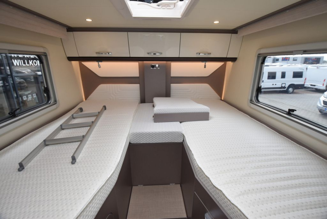 - Sun-Roof XL w połączeniu ze świetlikiem 50 x 70 cm (wraz z zaciemnieniem ze zintegrowanym oświetleniem) (Połączenie „Sun-Roof XL” ze „opuszczanym łóżkiem nad środkową grupą siedzeń” nie jest możliwe)