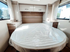 • Łóżko małżeńskie z regulacją wysokości, z dużym włazem garażowym po prawej stronie