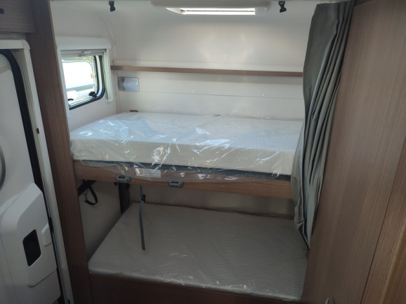 - Przebudowa części wypoczynkowej na łóżko („Masa w stanie gotowym do jazdy” (MRO) jest zdefiniowana przez VO (UE) 1230/2012. Odnosi się do wersji podstawowej wraz z wyposażeniem podstawowym (75 kg masa kierowcy, napełniony zbiornik paliwa, napełniony zbiornik wody w pozycji do jazdy, napełniona aluminiowa butla z gazem (15 kg) i kabel podłączeniowy (4 kg)) (W przypadku zamówienia opcji przebudowy łóżka w części wypoczynkowej w zintegrowanej jednostce wejście do łóżka odbywa się przez boczną ławkę) - standard