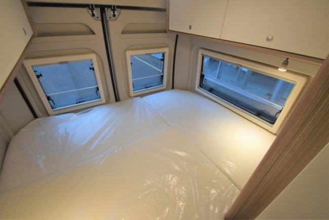 - Dach podnoszony (jeśli nie zamówiono Pakietu Basic, panele prysznicowe, lustro z oświetleniem pośrednim i wieszak na garderobę, fotele pilotów z pokryciami, gniazdko elektryczne w szafce podsufitowej nad kącikiem kuchennym oraz w garażu i lewych drzwiach kabiny kierowcy są obowiązkowe)