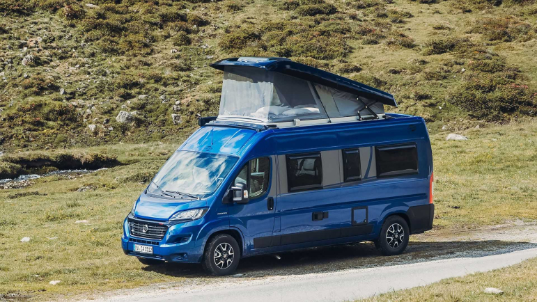 - Dach podnoszony (jeśli nie zamówiono Pakietu Basic, panele prysznicowe, lustro z oświetleniem pośrednim i wieszak na garderobę, fotele pilotów z pokryciami, gniazdko elektryczne w szafce podsufitowej nad kącikiem kuchennym oraz w garażu i lewych drzwiach kabiny kierowcy są obowiązkowe)