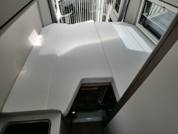 - Grupa siedzeń przekształcana na łóżko (łóżko poprzeczne dla gości)