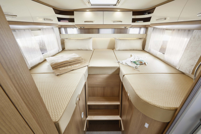 - Dostęp z zewnątrz poprzez kilka dużych klap. Wygodny dostęp od wewnątrz poprzez pokrycie kanapy grupy siedzeń w kształcie litery L i duże klapy w części mieszkalnej