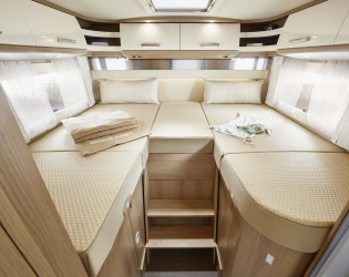 - Środkowe elektrycznie opuszczane łóżko nad częścią wypoczynkową ze świetlikiem w kapturze T (W przypadku opcji elektrycznego, środkowego łóżka opuszczanego, Midi-Heki nad częścią wypoczynkową jest pominięte. Wysokość nad środkowym łóżkiem opuszczanym: 1,84 m) (Elektrycznie opuszczane środkowe łóżko nad częścią wypoczynkową będzie dostępne w modelu c-tourer T 145 RB LE od stycznia 2024 r.)