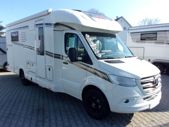 • Opatentowany garaż na skuter Pedelec, wysokość załadunku do 124 cm (W przypadku opcji garażu dla skutera Pedelec objętość zbiornika na ścieki zmienia się na 110 litrów, a w wersji chic c-line objętość świeżej wody zmienia się na 160 l, co zmniejsza ładowność garaż na skuter o 100 kg. Niemożliwe w połączeniu z opcją aluminiowej blachy ryflowanej do garażu na skuter)