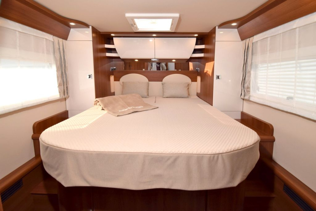 - Dostęp z zewnątrz poprzez kilka dużych klap. Wygodny dostęp od wewnątrz poprzez pokrycie kanapy grupy wypoczynkowej w kształcie litery L, odchylane boczne siedzisko i klapy podłogowe w części dziennej
