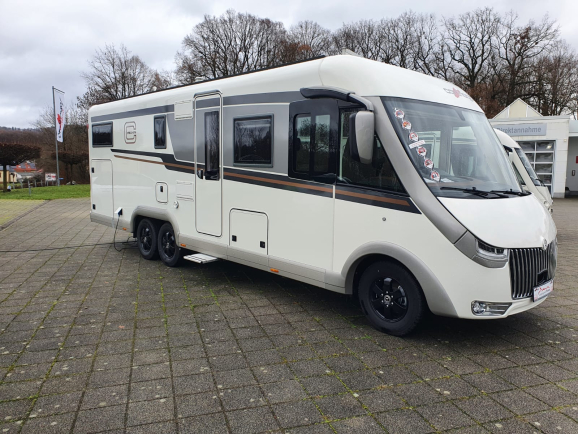6)Zgodnie z Rozporządzeniem Wykonawczym UE nr 2021/535 masa w stanie gotowym do jazdy odpowiada masie pojazdu (bez ładunku) z fabrycznie zamontowanym wyposażeniem standardowym (m.in. smary, narzędzia, pomoc w naprawie opon) plus kierowca (75 kg), zbiornik paliwa zapełniony w 90%, zbiornik świeżej wody dostepny podczas jazdy (20 l / dla serii e-line 50 l), butla gazowa aluminiowa napełniona w 100%. Masa podana przez producenta dla wyposażenia dodatkowego jest zawsze zależna od masy w stanie gotowym do jazdy i ulega zmniejszeniu w przypadku montażu wyposażenia dodatkowego (pakiety wyposażenia, wyposażenie specjalne). Należy pamiętać, że rzeczywista masa podana w certyfikacie zgodności (CoC) jest również wartością znormalizowaną. Ponieważ masa w stanie gotowym do jazdy – jako część masy rzeczywistej – ma prawnie dopuszczalną tolerancję ± 5%, masa rzeczywista może odpowiednio odbiegać od podanej wartości nominalnej.