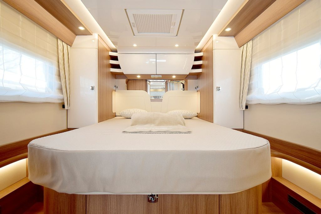- Duża, centralna przestrzeń ładunkowa (wysokość wnętrza 22 cm) z bardzo niskim schowkiem w podwójnej podłodze (wysokość użytkowa 46 cm), wygodny załadunek przez drzwi mieszkalne XL przez duże, samonośne luki podłogowe w części mieszkalnej