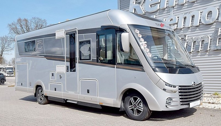 - Opatentowany garaż na skuter Pedelec, wysokość załadunku do 124 cm (Dzięki opcji garażu na skuter Pedelec pojemność zbiornika na ścieki zmienia się na 110 litrów w modelu c-tourer/chic c-line, a objętość świeżej wody w chic c-line zmienia się na 160 l, zmniejszając ładowność garażu na skuter o 100 kg. Niemożliwe w połączeniu z opcją aluminiowej blachy ryflowanej do garażu na skuter)