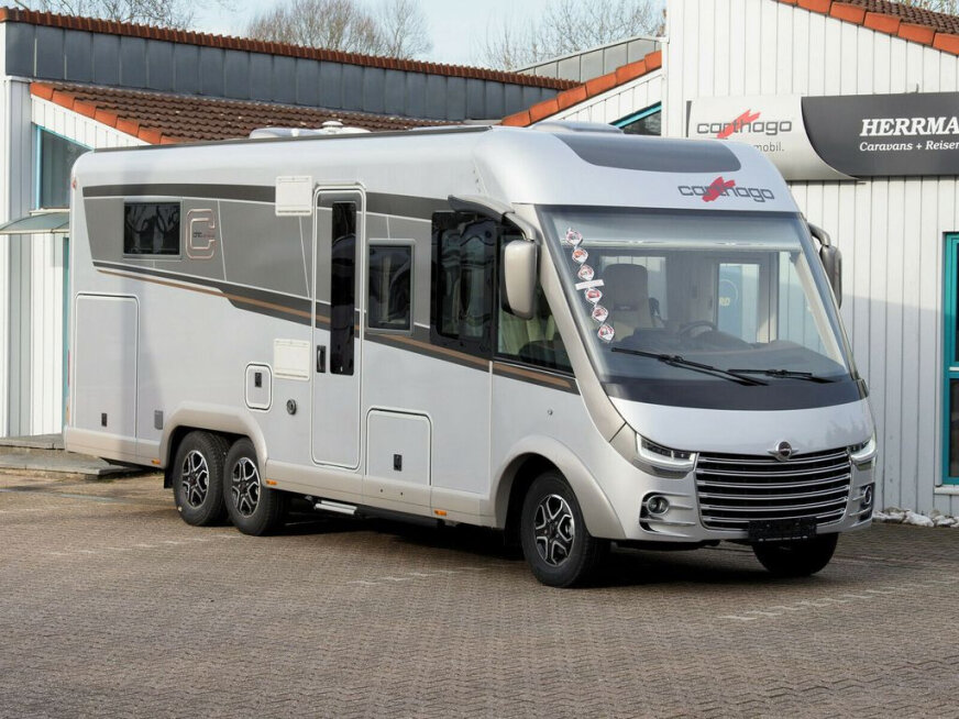 - Opatentowany garaż na skuter Pedelec, wysokość załadunku do 124 cm (W opcji garażu na skuter Pedelec pojemność zbiornika na ścieki w pojazdach c-tourer/c-line zmienia się na 110 litrów, a w pojazdach c-line objętość świeżej wody na 160 l, obciążenie garażu na skuter zmniejszone o 100 kg. Niemożliwe w połączeniu z aluminiową podłogą w kratkę do garażu)