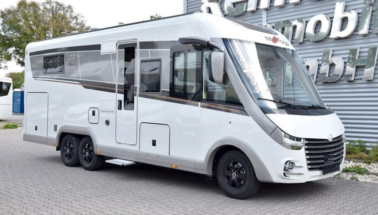 - Opatentowany garaż na skuter Pedelec, wysokość załadunku do 124 cm (Dzięki opcji garażu na skuter Pedelec pojemność zbiornika na ścieki zmienia się na 110 litrów w modelu c-tourer/chic c-line, a objętość świeżej wody w chic c-line zmienia się na 160 l, zmniejszając ładowność garażu na skuter o 100 kg. Niemożliwe w połączeniu z opcją aluminiowej blachy ryflowanej do garażu na skuter)