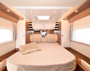 • Kabina kierowcy „Sky Dream Comfort” z dwoma panoramicznymi świetlikami (zamiast opuszczanego łóżka) (Opcja „Sky Dream Comfort” ze schowkami na około nad częścią wypoczynkową i kabiną kierowcy, dwoma dużymi panoramicznymi świetlikami zintegrowanymi z zawieszoną podsufitką z oświetleniem Ambiente zamiast opuszczanego łóżka)
