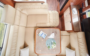 Wyznacza standardy wśród kamperów z tylną grupą siedzeń: z przodu elektrycznie opuszczane wzdłużnie pojedyncze łóżka z obszerną, ciągłą powierzchnią do spania, z tyłu ekskluzywna grupa siedzeń wypoczynkowych, pomiędzy wyjątkowo szeroką kuchnią z elegancko wygiętym blatem kuchennym i luksusowa łazienka. Odkryj udoskonalenia liner-for-two!