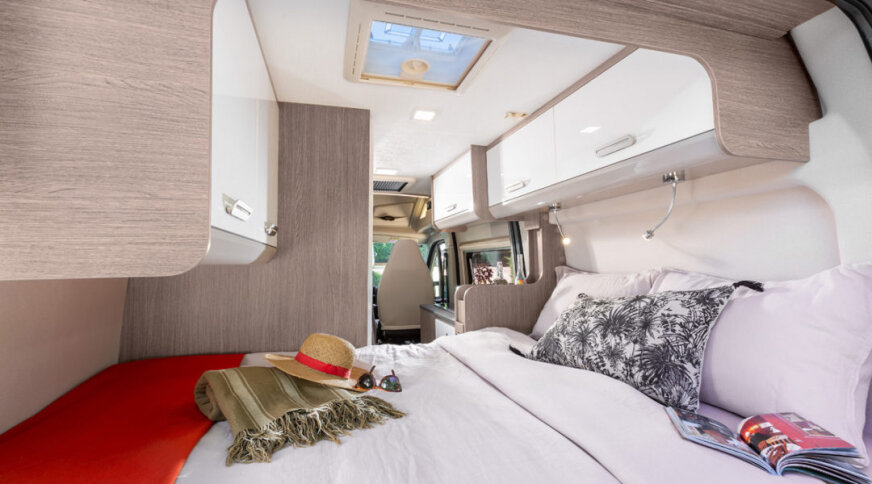 V114S jest idealny do jazdy w dowolnym miejscu i czasie i jest wystarczająco elastyczny, aby można go było używać do codziennej jazdy. Ma wszystko, czego potrzebujesz na wyjście: kącik kuchenny, salon, łazienkę z oknem i podwójnym łóżkiem. To 5,41 m przyjemności dla dwojga. Do codziennego użytku tylne łóżko można podnieść, aby zapewnić więcej miejsca, a salon ma dwa miejsca z pasami bezpieczeństwa, dzięki czemu cztery osoby mogą podróżować razem.