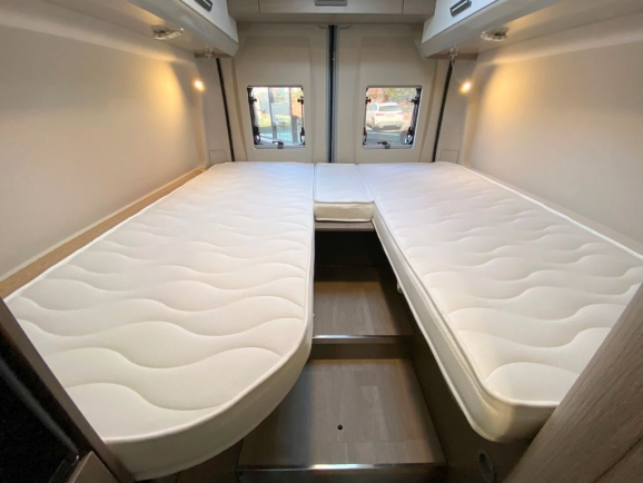 Pojemność zbiornika na czystą wodę (zatwierdzona dla naszych modeli półzintegrowanych); pojemność wynosi 20 l (vany) / 1 l (kampery), musi być zgodna z przepisami, aby użytkownik mógł dostosować obciążenia i liczbę pasażerów do masy załadowanego pojazdu. W tym celu pojemność zbiornika czystej wody może być regulowana przez użytkownika, aby uniknąć zmniejszenia liczby pasażerów.