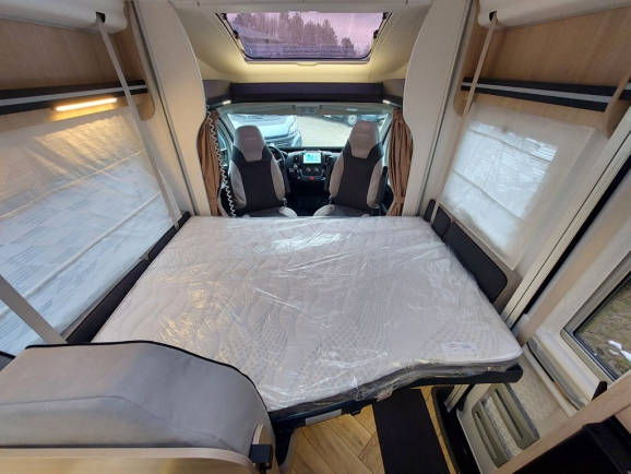 • Pakiet Akcesoriów: markiza, system solarny, oświetlenie zewnętrzne drzwi wejściowych, drzwi z moskitierą, kabina kierowcy z roletami zaciemniającymi, przedłużenie do łóżek pojedynczych, zestaw montażowy dla drugiego akumulatora