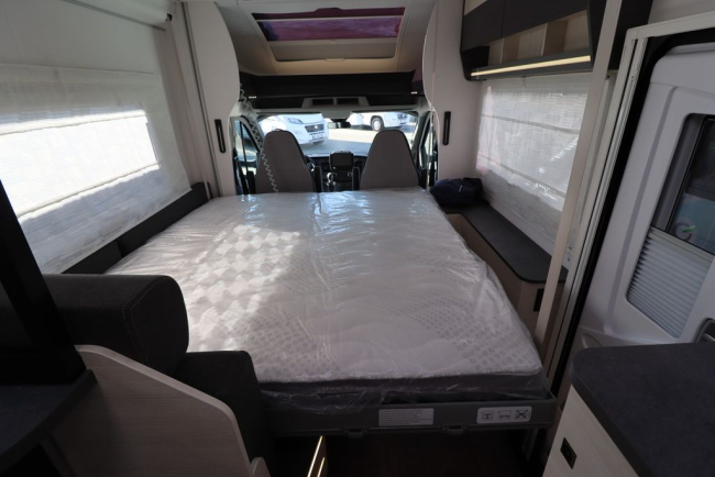 - Pakiet Akcesoriów: markiza, instalacja solarna, oświetlenie zewnętrzne drzwi wejściowych, drzwi z moskitierą, kabina kierowcy z roletami zaciemniającymi, przedłużenie do łóżek pojedynczych, zestaw montażowy dla drugiego akumulatora