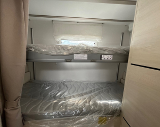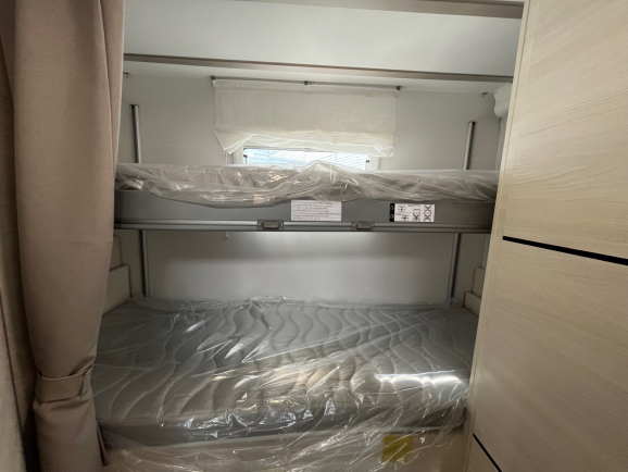 - Pakiet Akcesoriów: markiza, instalacja solarna, oświetlenie zewnętrzne drzwi wejściowych, drzwi z moskitierą, kabina kierowcy z roletami zaciemniającymi, przedłużenie do łóżek pojedynczych, zestaw montażowy dla drugiego akumulatora