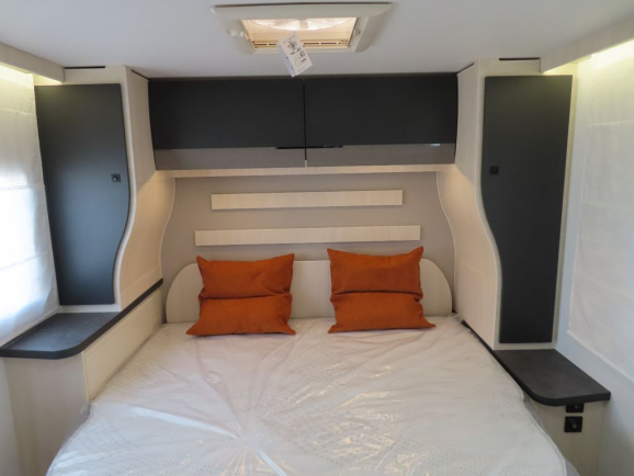- Pakiet Akcesoriów: markiza, instalacja solarna, oświetlenie zewnętrzne drzwi wejściowych, drzwi z moskitierą, kabina kierowcy z roletami zaciemniającymi, przedłużenie do łóżek pojedynczych, zestaw montażowy dla drugiego akumulatora