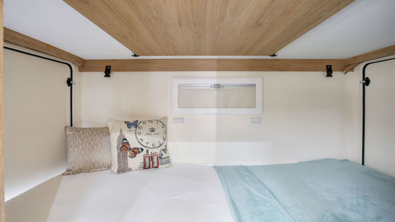 KAŻDY MA WŁASNE ŁÓŻKO. Różne typy pokoi, z dwoma łóżkami pojedynczymi, łóżkiem środkowym, łóżkiem piętrowym lub łóżkiem poprzecznym. Gama HORON oferuje wszystkie udogodnienia, które zapewnią Ci dobry wypoczynek. Duże okna boczne i świetliki zapewniają światło i wentylację. Dla większych załóg łóżka podnoszone lub rozkładane w jadalni.