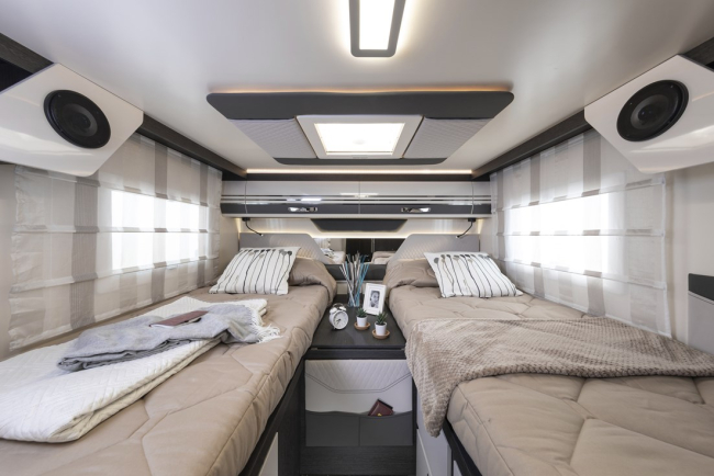Na pokładzie MAGIS wszystko pozostaje pod kontrolą i wystarczy jedno kliknięcie dzięki dotykowemu panelowi sterowania iNet X Pro z dedykowaną aplikacją. Ze swojego smartfona możesz sterować takimi funkcjami jak włączanie i wyłączanie oświetlenia zewnętrznego i wewnętrznego, sprawdzanie poziomu wody w zbiornikach, poziomu baterii i butli gazowych.
