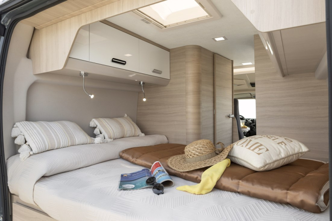 Garaż wyposażony w maksymalną modułowość do transportu nawet większych przedmiotów (na przykład rowerów) dzięki wyjmowanym lub podnoszonym lóżkom. Schowki i schowki pod łóżkami zapewniają elastyczność załadunku. Miejsce na dwie butle gazowe.