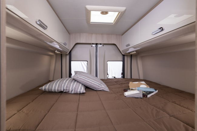 Garaż wyposażony w maksymalną modułowość do transportu nawet większych przedmiotów (na przykład rowerów) dzięki wyjmowanym lub podnoszonym lóżkom. Schowki i schowki pod łóżkami zapewniają elastyczność załadunku. Miejsce na dwie butle gazowe.