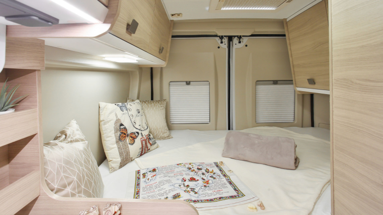 Garaż wyposażony w maksymalną modułowość do transportu nawet większych przedmiotów (na przykład rowerów) dzięki wyjmowanym lub podnoszonym lóżkom. Schowki i schowki pod łóżkami zapewniają elastyczność załadunku. Miejsce na dwie butle gazowe.