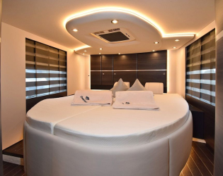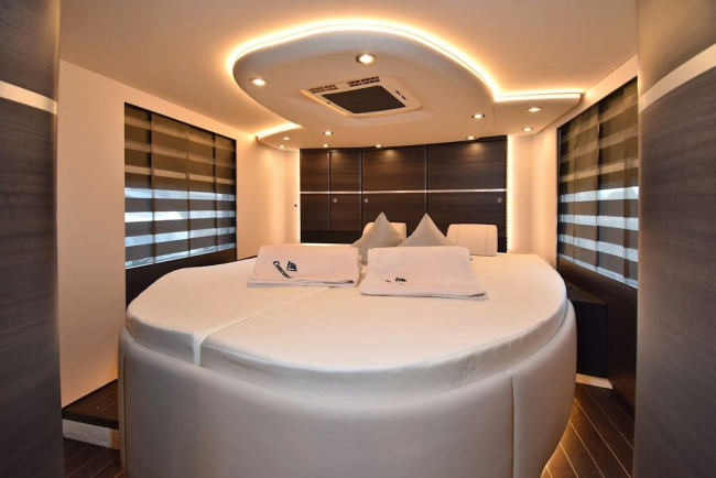 • Wysokiej klasy trójdrożny system nagłośnienia TV w tylnej sypialni (2 głośniki wysokotonowe z miękką kopułką, 2 głośniki średniotonowe, 2 głośniki nisko-średniotonowe, cyfrowy 5-kanałowy wzmacniacz DSP i cyfrowy procesor dźwięku do optymalizacji dźwięku, płaski ekran LED)