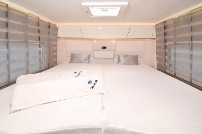 • Pakiet akustyczny w tylnej sypialni (2 x 2-drożny system głośników i 4-kanałowy wzmacniacz do optymalizacji dźwięku płaskiego ekranu LED)
