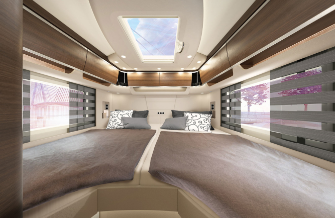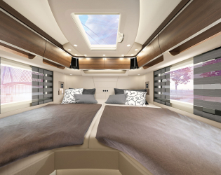 - System telewizji satelitarnej z anteną 85 cm, w pełni automatycznym ustawieniem, konfiguracją dla wielu użytkowników z TWIN-LNB, podłączenie drugiego odbiornika z 12 V i gniazdem antenowym w sypialni, możliwe odtwarzanie dźwięku przez system radiowy (całkowita wysokość pojazdu plus ok. 100 mm)
