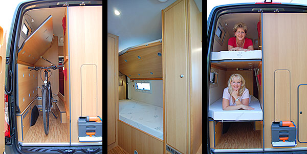 Najważniejszym punktem Duo Independent są dwa łóżka z tyłu, ustawione jako łóżka piętrowe, dzięki czemu pojazd pozostaje kompaktowy.