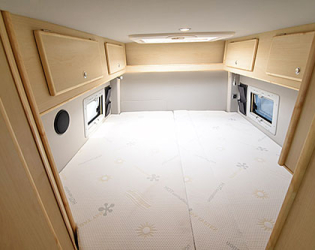 Encanto ma dwa wzdłużne łóżka z tyłu, co pozwala na obszerny rozmiar łóżka dla kampera tej wielkości.