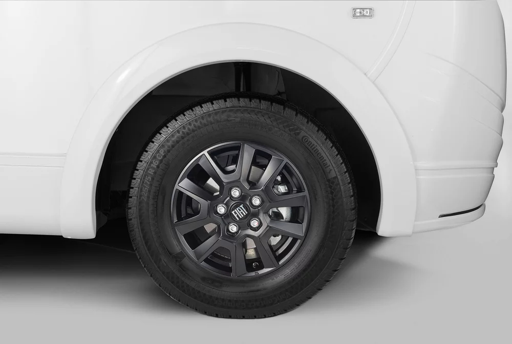 Podwozie: felgi aluminiowe 16″, reflektory przeciwmgielne, klimatyzacja kabiny, skórzana kierownica, zbiornik paliwa 90 l