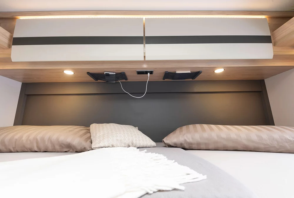 Energetyka: gniazda 12 V, 230 V, USB; akumulator AGM 95 Ah; opcja drugiego akumulatora lub zestawu solarnego 100 W