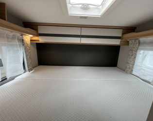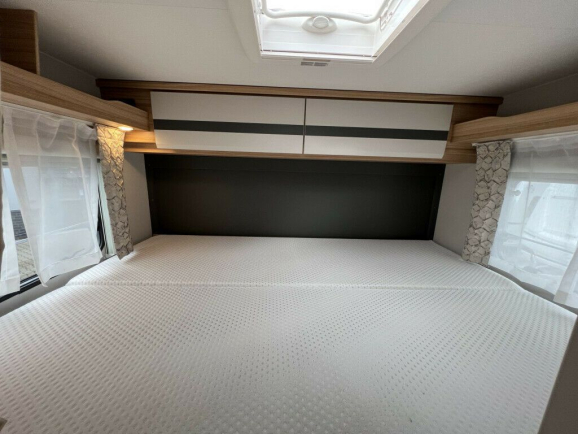 - Panoramiczny świetlik 40x40 cm z moskitierą i roletami zaciemniającymi nad opuszczanym łóżkiem